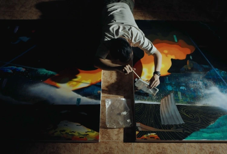 “我们的生活中充斥着各种虚拟元素,真实的事物被数据取代,而虚拟与现实之间的界线亦渐渐变得模糊不清。”他进一步解释说:“我绘画的颜色是一层一层的,感觉好像要进入另一个世界,而那份律动就像我们用手指拨动手机的动作。”