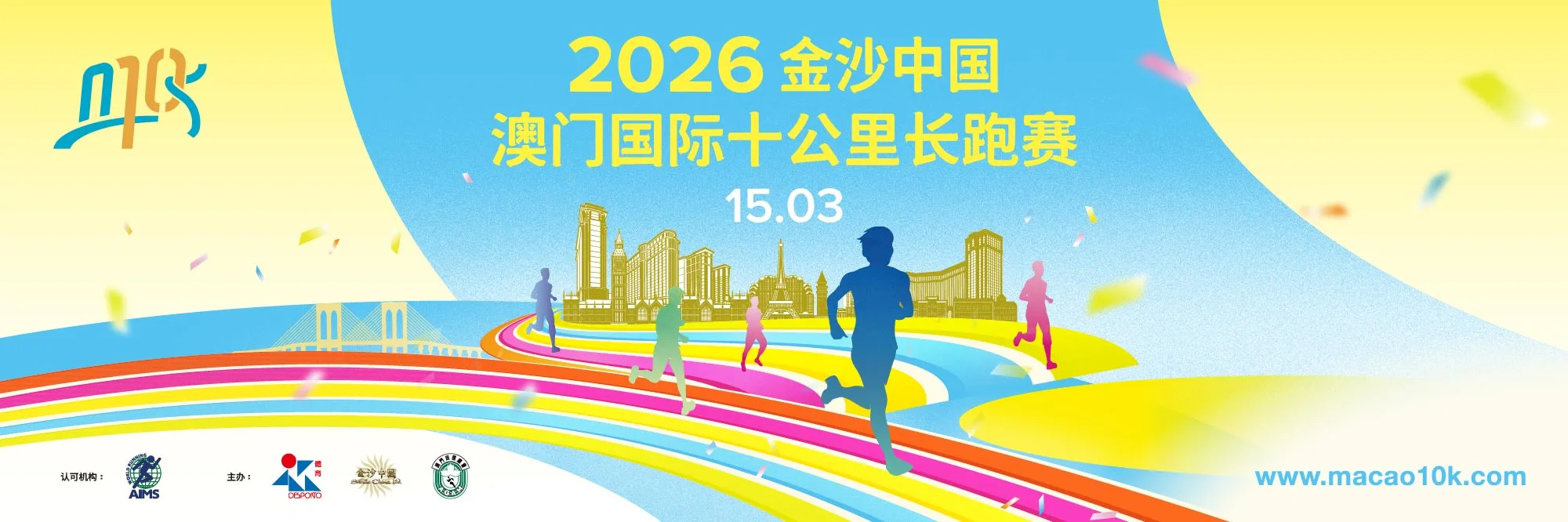 由澳门特别行政区政府体育局、金沙中国有限公司及澳门田径总会主办的 “2026金沙中国澳门国际十公里长跑赛” 即将于3月15日举行!