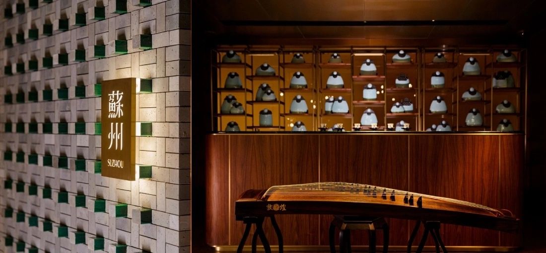 江南是中国古典和民间音乐的摇篮,因此餐厅亦加入了中乐的元素,于大厅设有现场古筝表演。古筝作为有“江南丝竹”之称的代表之一,其音色清新明亮,令用餐体验更显精致,余韵淡雅绵长。