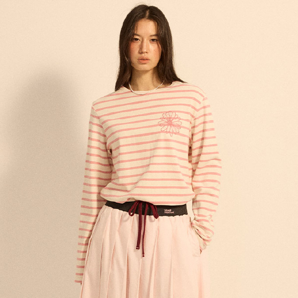 Mardi Mercredi经典条纹的长袖上衣百搭时尚,胸前绣上同色系的小雏菊图案,展现出独特的简约优雅及法式风格。