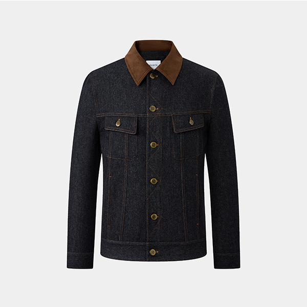 甄选意大利 LP Australis 系列Super 150s羊毛仿牛仔面料,16微米超细纤维质地,兼具羊毛的柔软垂顺与牛仔的利落质感; 拼接撞色仿麂皮领,搭配撞色明线细节,层次鲜明更具辨识度; 同材质阔腿裤组成套装,简约大气尽显格调。