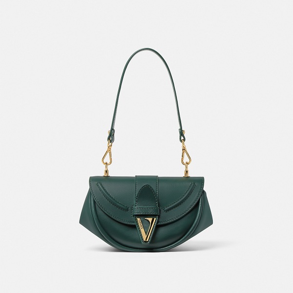 Virtus小号单肩包,向品牌标志性形象致敬,采用现代感十足的半圆廓形,由柔软的牛皮革制成。翻盖饰有吸睛的「V」型徽章,点缀珐琅雕刻的Versace Logo,可拆卸顶部提把饰有Medusa铆钉。附有可拆卸和可调节肩带,方便斜背。