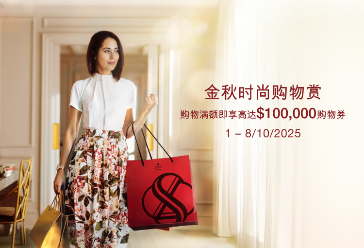 购物满额更可换领澳门金沙度假区之尊尚住宿一晚,包括澳门四季名荟住宿。