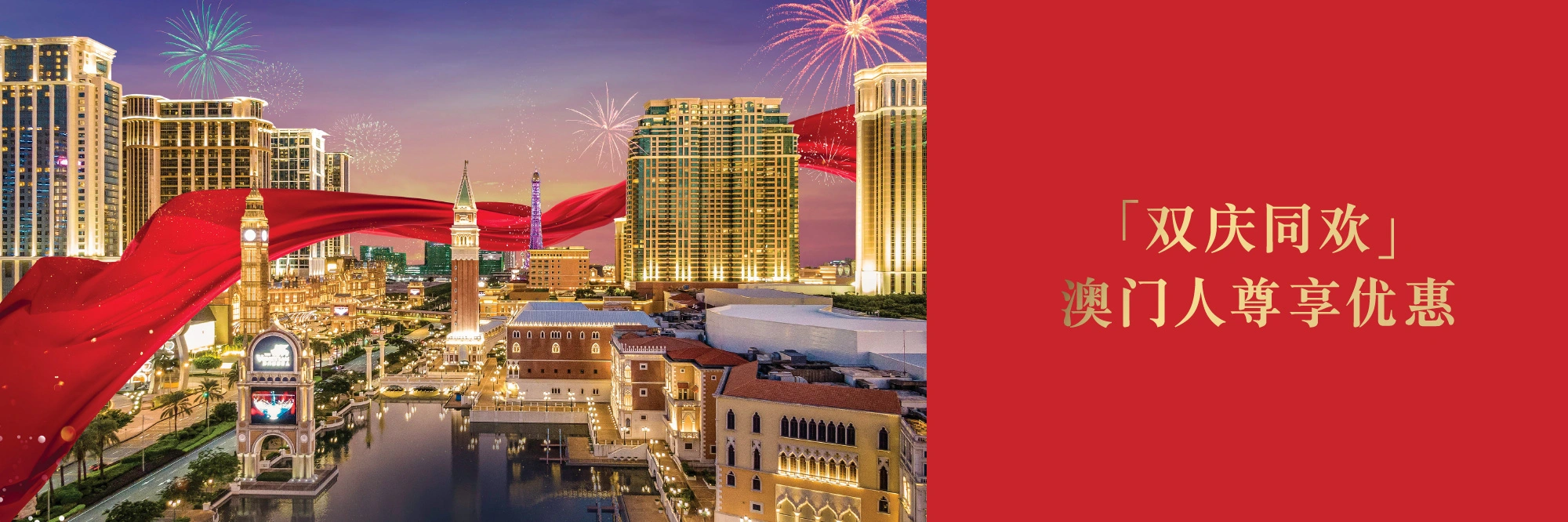 庆祝中华人民共和国成立75周年及澳门回归祖国25周年,2024 年10月22日至12月22日期间,凭澳门身份证尊享澳门金沙度假区精彩优惠。