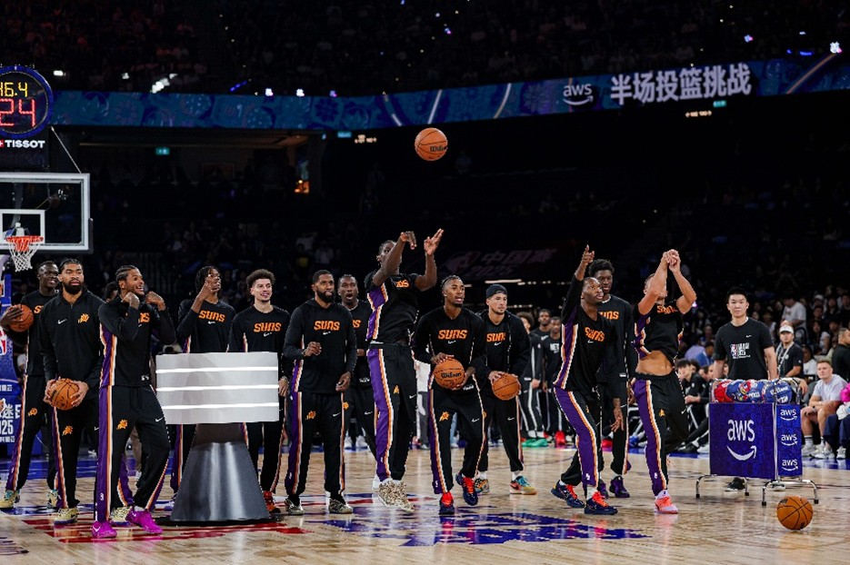 图片说明:金沙中国有限公司于10月11日在威尼斯人综艺馆隆重举办NBA球迷日2025。布鲁克林篮网队及凤凰城太阳队的球员现身活动现场,与球迷进行一系列互动挑战,展现NBA与篮球运动的魅力。