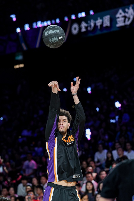 活动当天,说唱歌手欧阳靖联手金沙中国娱乐团队倾情献艺,为精彩刺激的一天揭开序幕。随后,幸运球迷更与NBA球员及明星组队,在技巧挑战赛中一较高低,展现运球、传球、敏捷度及投篮实力。
