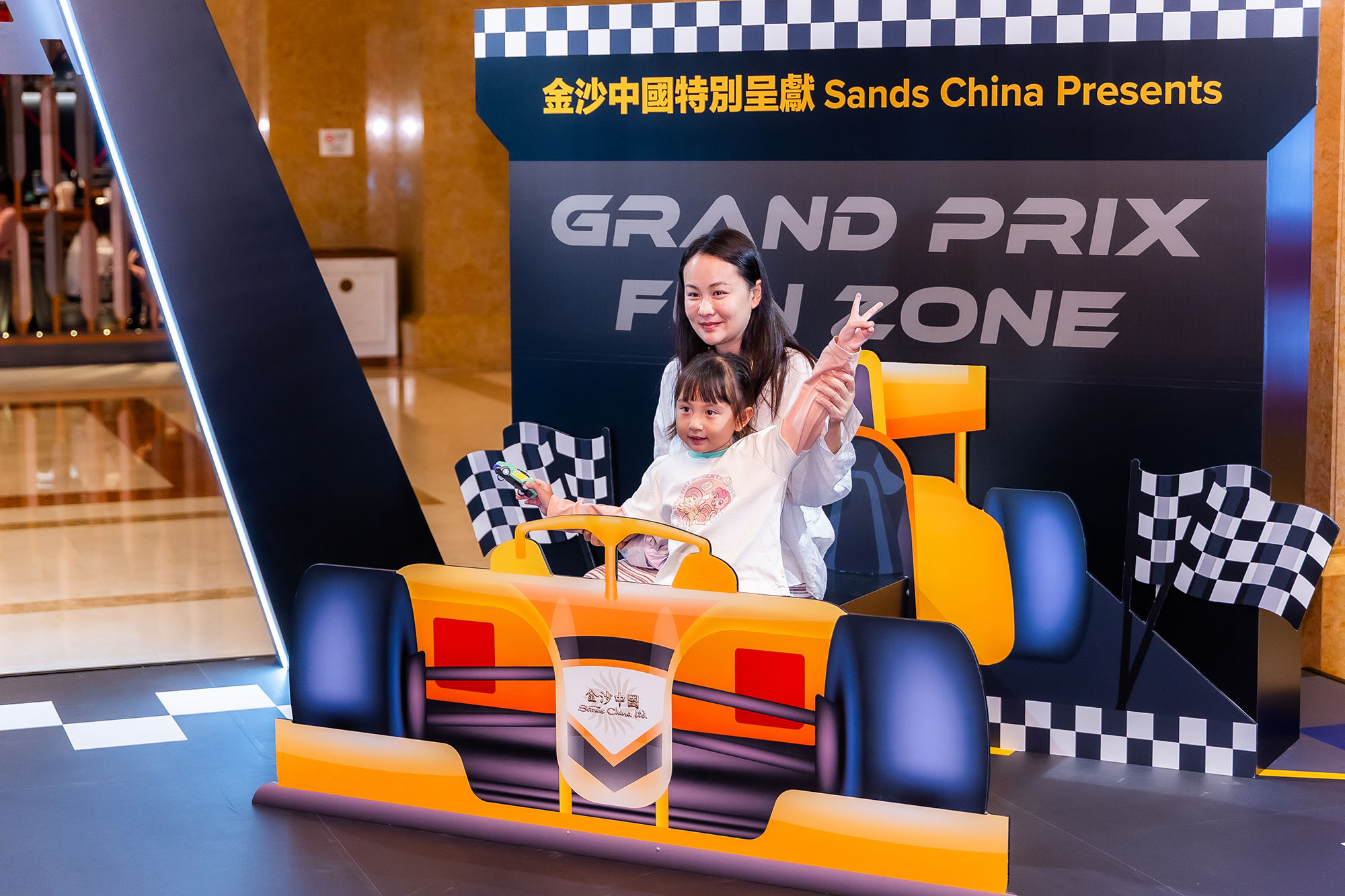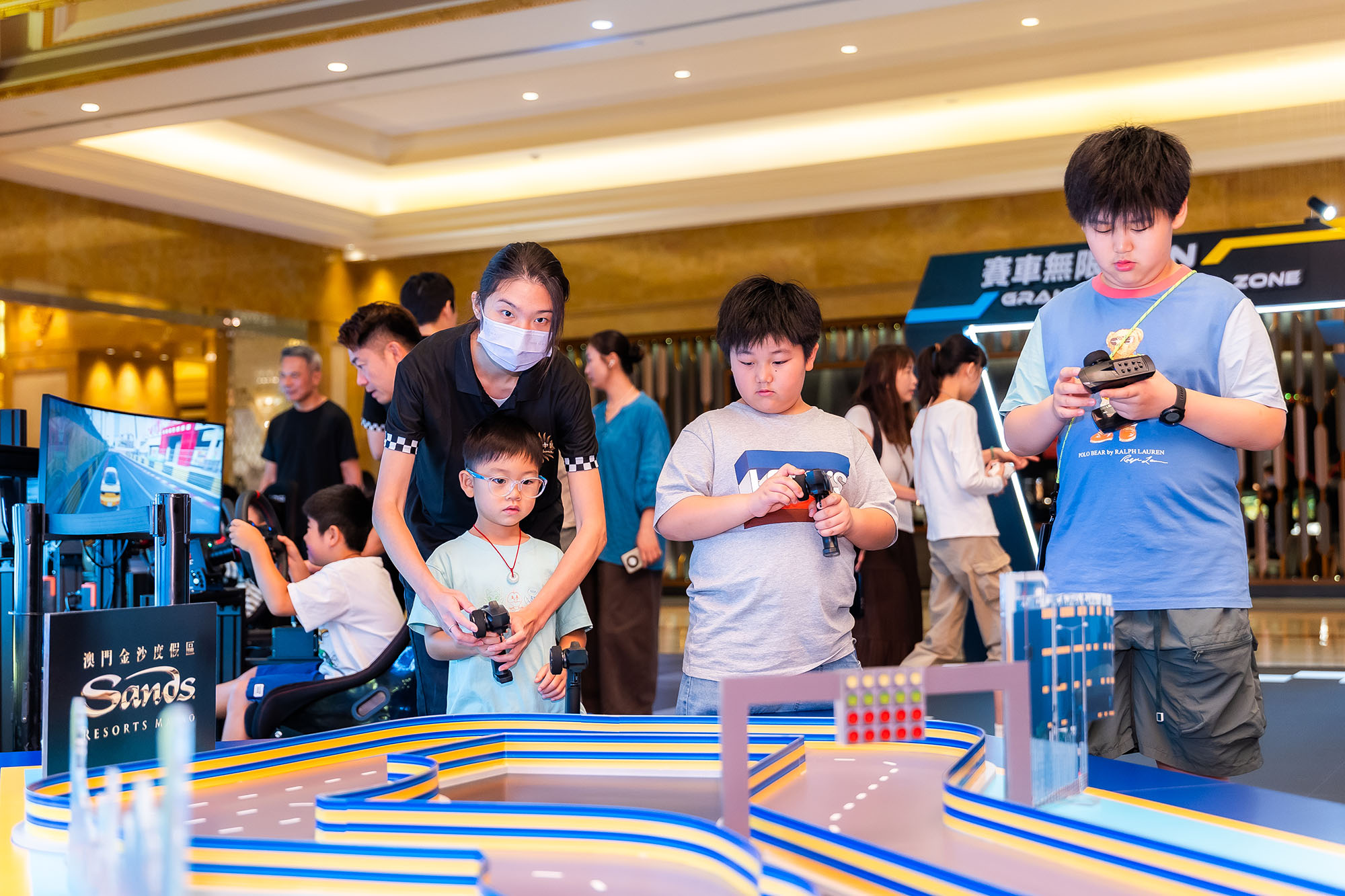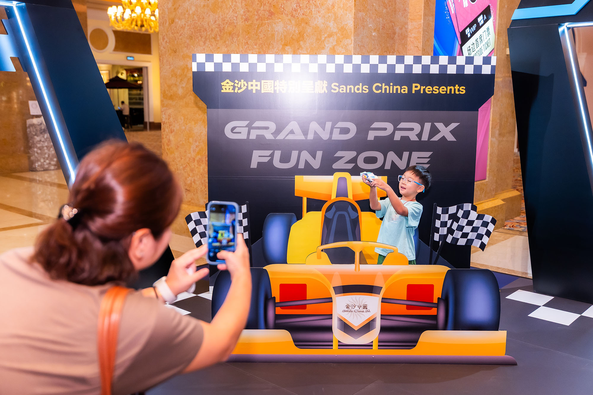 在澳门格兰披治大赛车举行之际,金沙中国于11月8日至16日期间呈献“赛车无限FUN游戏展区”,在澳门威尼斯人剧场前地为亲子旅客及本地居民特设一系列以赛车为主题的亲子同乐体验,包括赛车模拟竞速体验、东望洋赛道遥控跑车,以及彩绘工作坊,让参加者亲手设计及绘制专属模型赛车,免费入场,藉此推广这项体育盛事至不同年龄层。赛事期间亦提供赛事直播,透过现场设置的大型LED屏幕让观众见证大赛车的精彩盛况。活动吸引逾3,000人次到场参与,藉互动体验将赛事气氛联动全城。