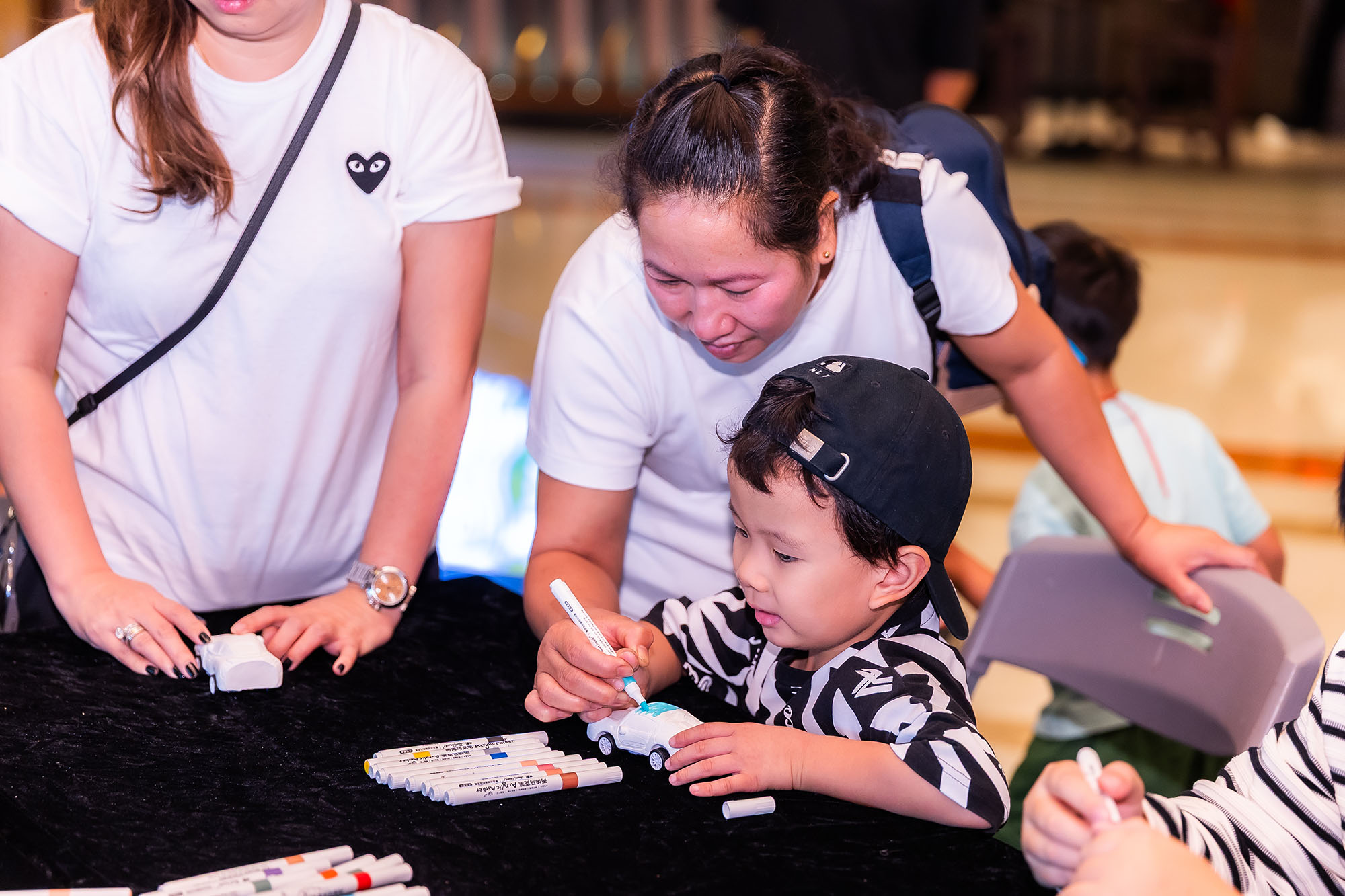 图片说明:市民及旅客于澳门威尼斯人观赏赛事直播及参与亲子活动,包括赛车模拟体验、东望洋赛道遥控跑车,以及彩绘工作坊,亲手设计及绘制专属模型赛车。活动吸引逾3,000人次到场参与,一同在互动游戏中感受赛事气氛。