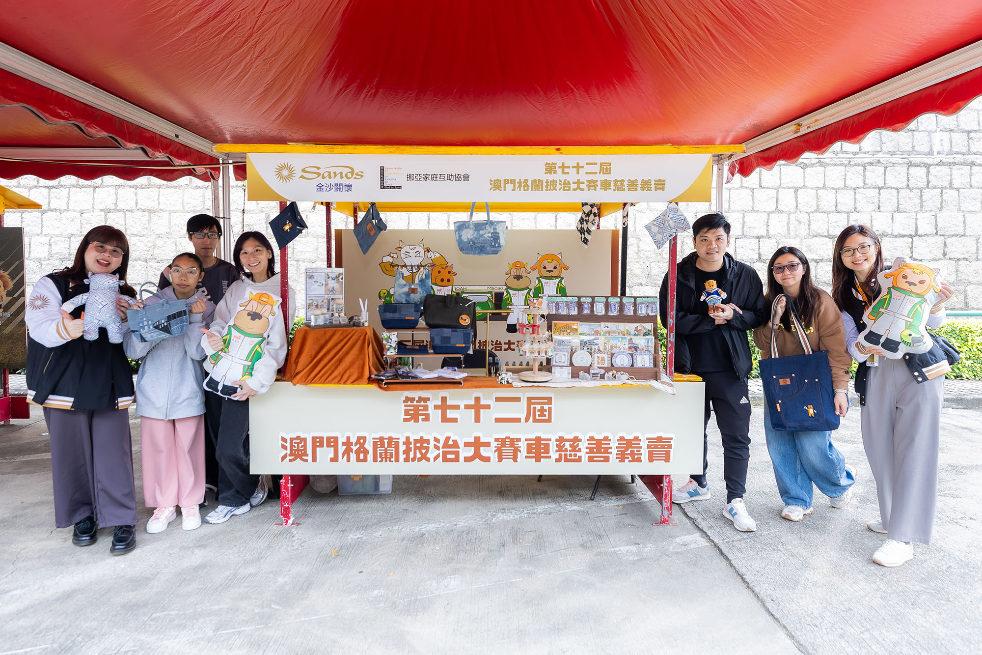 在赛事现场,金沙中国联同本澳社服机构挪亚家庭互助协会设置慈善义卖摊位,展出由该会会员设计以赛车为主题的文创产品供市民及旅客选购。成立于2014年的挪亚家庭互助协会一直致力透过心理辅导及社区关怀服务等,协助本澳青少年及有需要人士建立正确价值观。是次的慈善义卖旨在提升他们的自我价值,助力他们融入社会,并让社服机构成员感受这项面向国际的体育盛事的魅力。