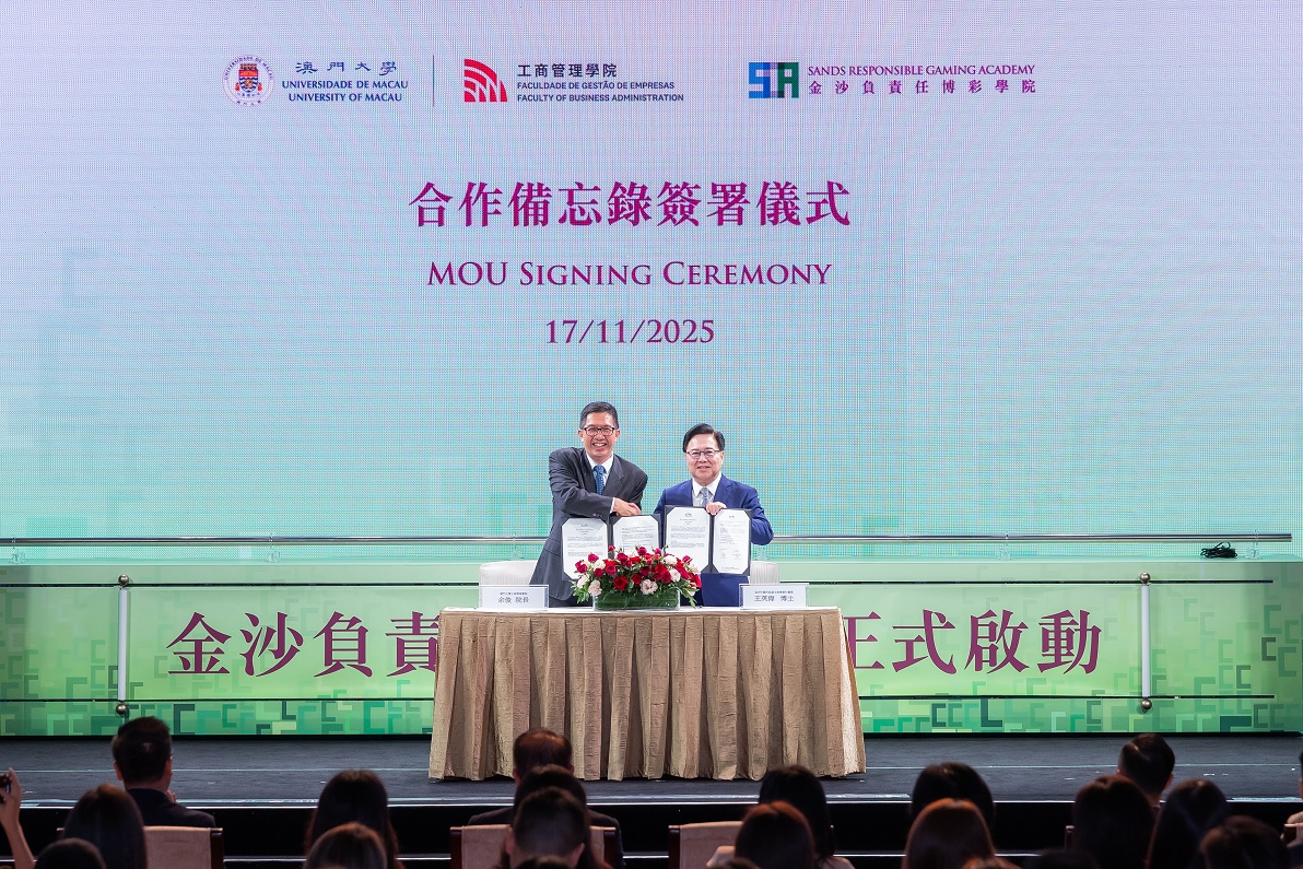 是次签署的合作备忘录进一步深化金沙中国有限公司与澳门大学的合作关係,内容旨在加强双方在负责任博彩领域的产学研合作,聚焦研究交流、人才培养以及本地化的负责任博彩实践等重点领域。双方将配合澳门特区政府的施政方针,共同加强澳门负责任博彩领域的专业教育,提升社会意识。
